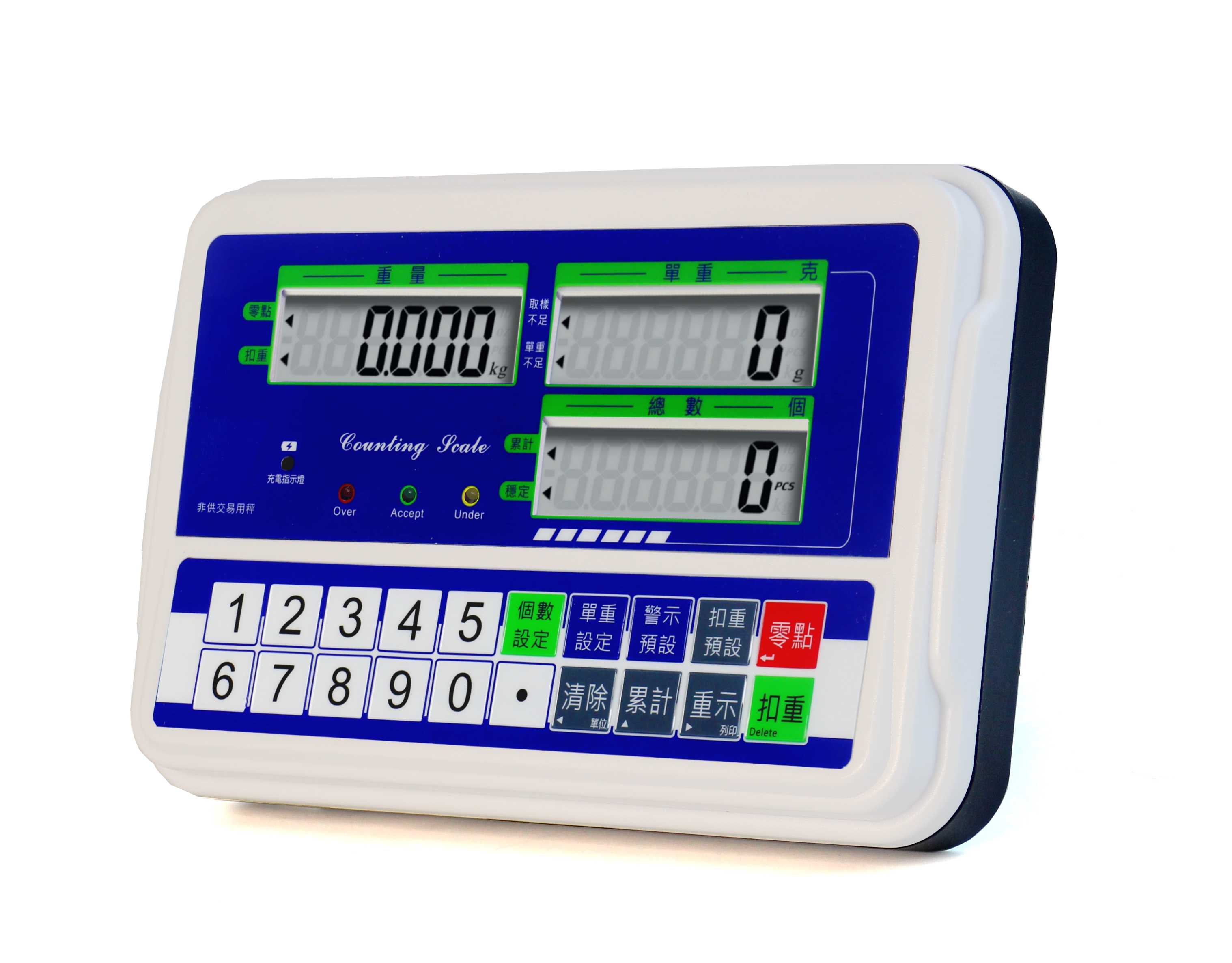 Display : LCD TARE (weight column-6digits)/Green color backlight/Red LED display.