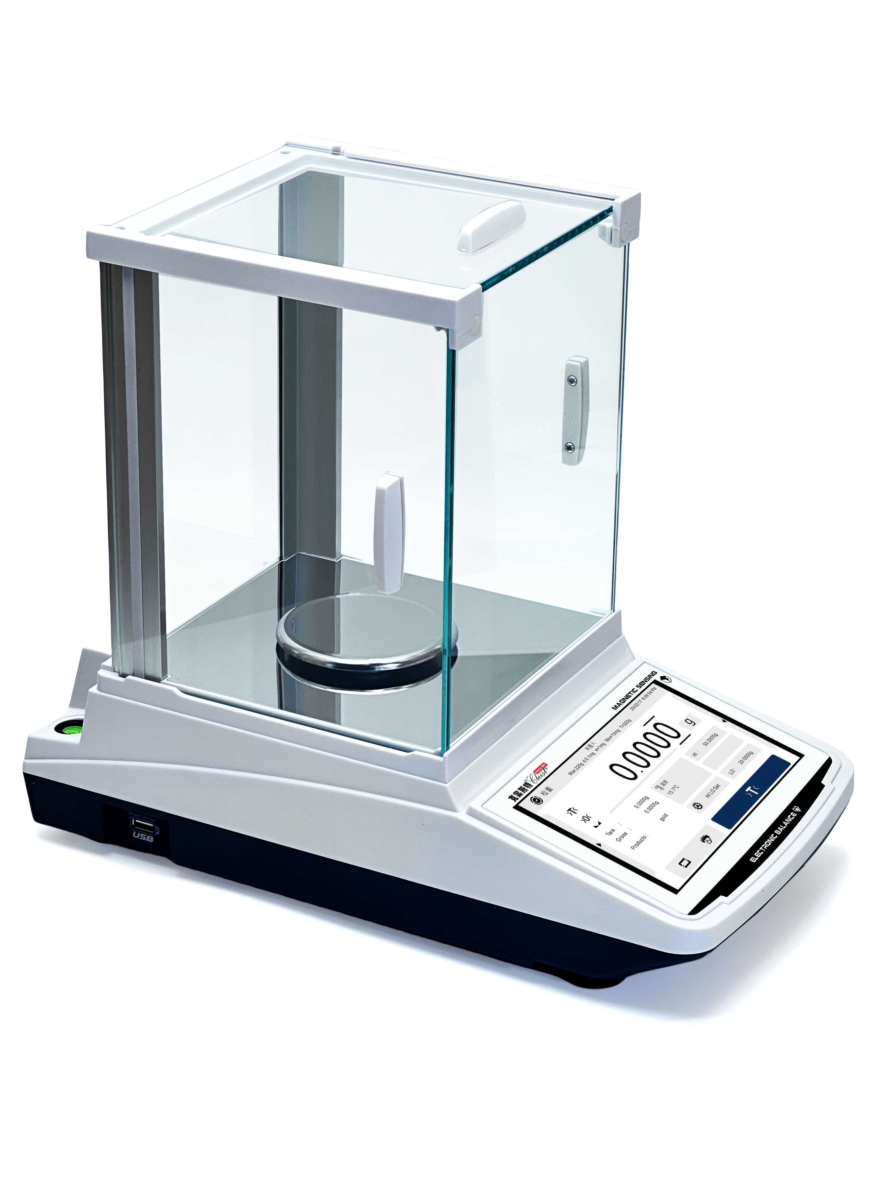 铝合金属底座、不锈钢盘、玻璃防风罩、吊钩下方称重